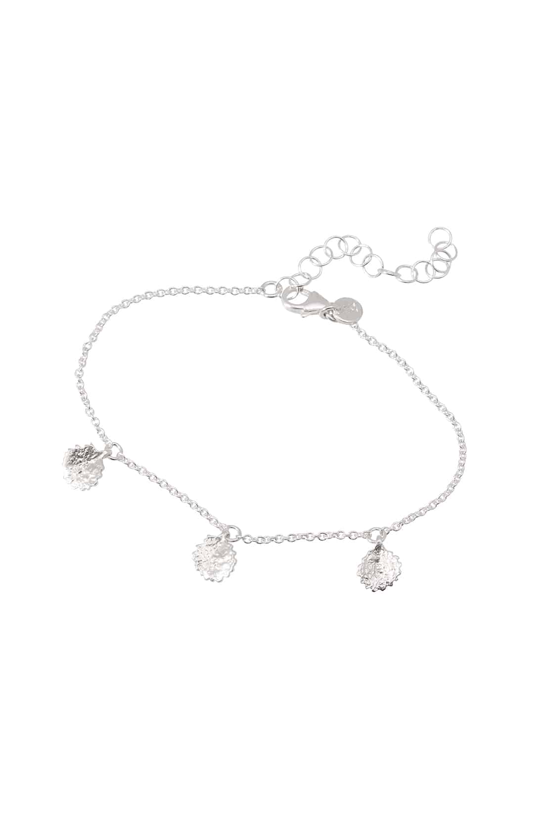 Dette nydelige armbåndet er laget i tynt ankerkjede i 925 hvitt sølv, med tre løv hengende ledig på. Løvsmykkene våre er inspirert av den sterke, særegne dvergbjørka. Vi tenker at smykkene kan symbolisere styrke og pågangsmot! Disse lager vi også med forgylte løv og i oksidert utgave. Lengde på kjedet: regulerbart, 16 cm.- 19 cm. Størrelsen på de små løvene er ca 7-8 mm i diameter.